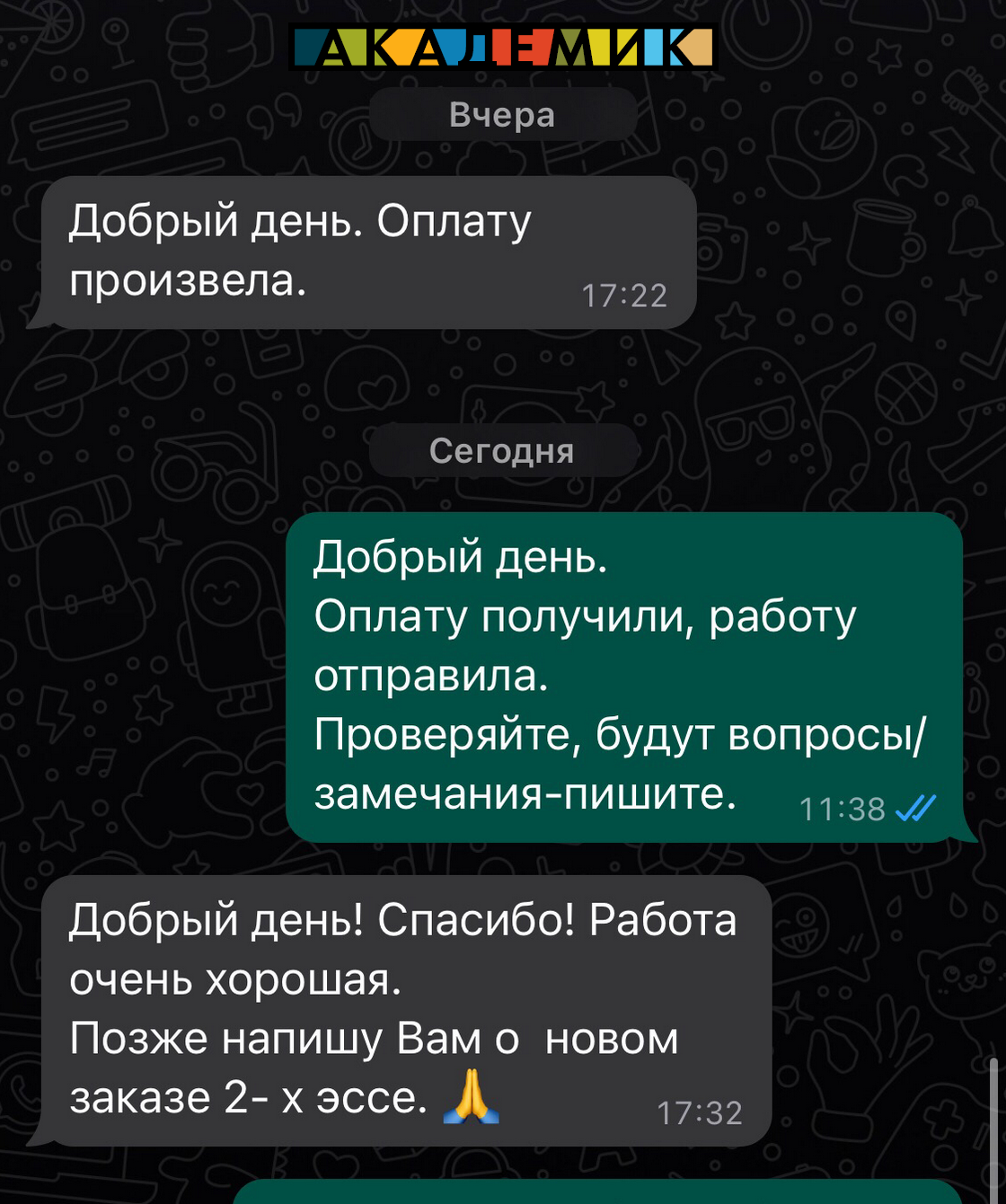 Вы вносите предоплату 50%, и мы приступаем к написанию работы